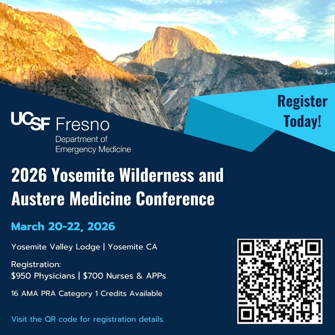 Join the University of California San Francisco, Fresno Department of Emergency for the 2026 Yosemite Wilderness and Austere Medicine Conference in Yosemite, CA from March 20-22, 2026.